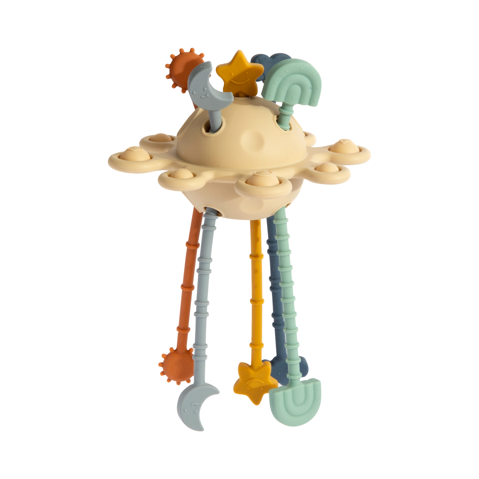 Made from BPA Free, food grade silicone, the Playground Zippy is perfect for enhancing your baby's motor skills and sensory development! Designed to promote tactile responses through pulling and pushing, it features fun pop-it elements and multiple silicone strings for baby to pull and tug at.